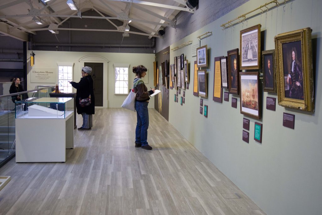As part of the exhibition, visitors will experience the Tosier Chocolate House in Greenwich, reimagined in a side room through an audio and visual experience that invites you to listen into stories and experience 18th century Greenwich. As Grace Tosier, who features in the new AV experience created by Unusual Expo and actor – writer Jonathan Coote, said: