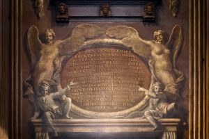 Donor board in the Vestibule of the Painted Hall Showing John Evelyn’s donation of £1000.