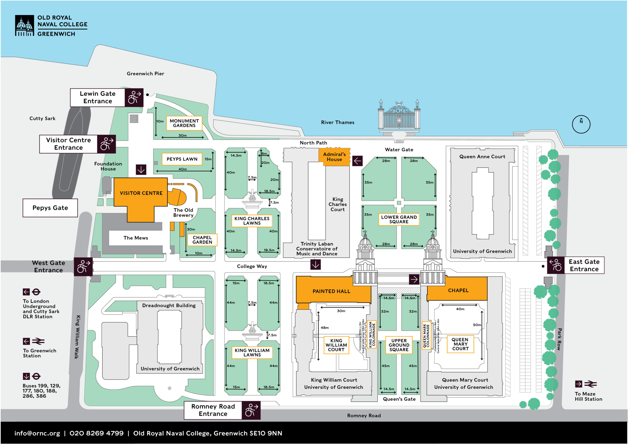 Adjacent to Greenwich Pier, both the King William and King Charles Lawns are perfectly positioned for a variety of events from corporate away days to weddings, and for two days each year, is home to one of London’s largest free outdoor arts festivals.